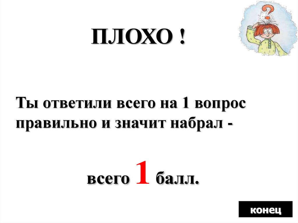 ПЛОХО !Ты ответили всего на 1 вопрос