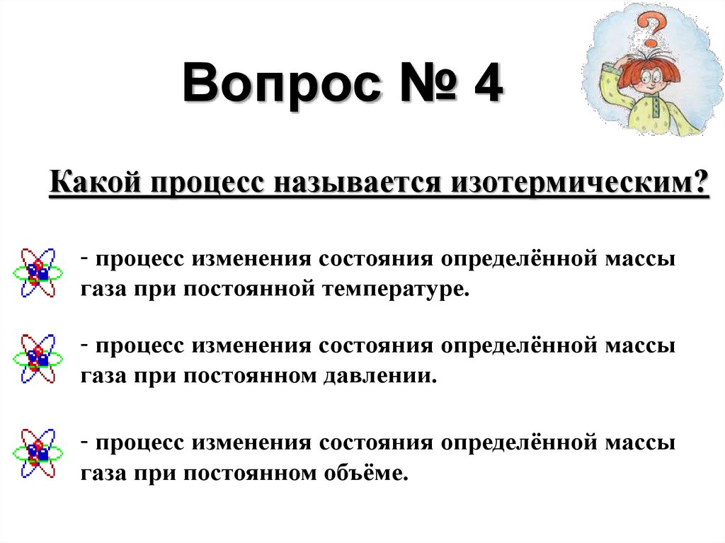 Вопрос № 4Какой процесс называется изотермическим?