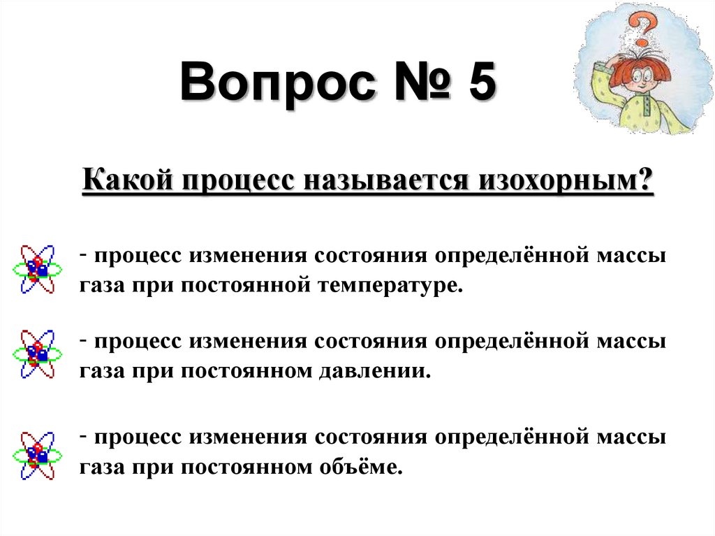 Вопрос № 5Какой процесс называется изохорным?