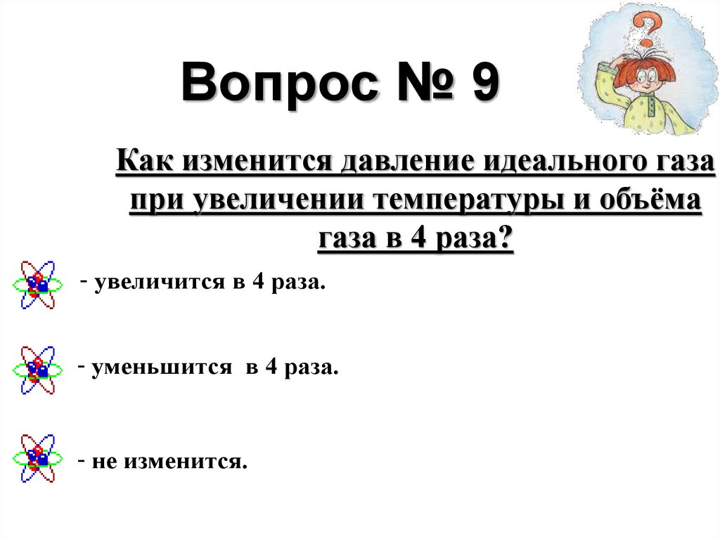 Вопрос № 9Как изменится давление идеального газа
