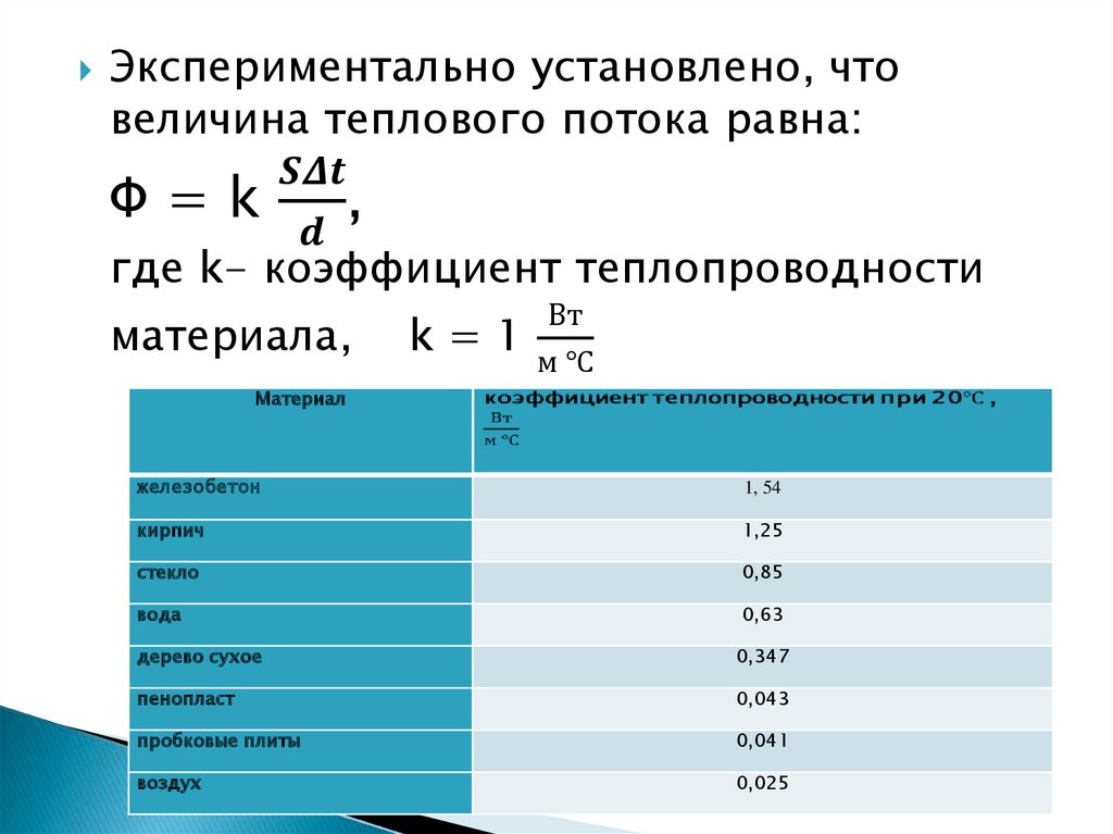 Экспериментально установлено, чтовеличина теплового потока равна: