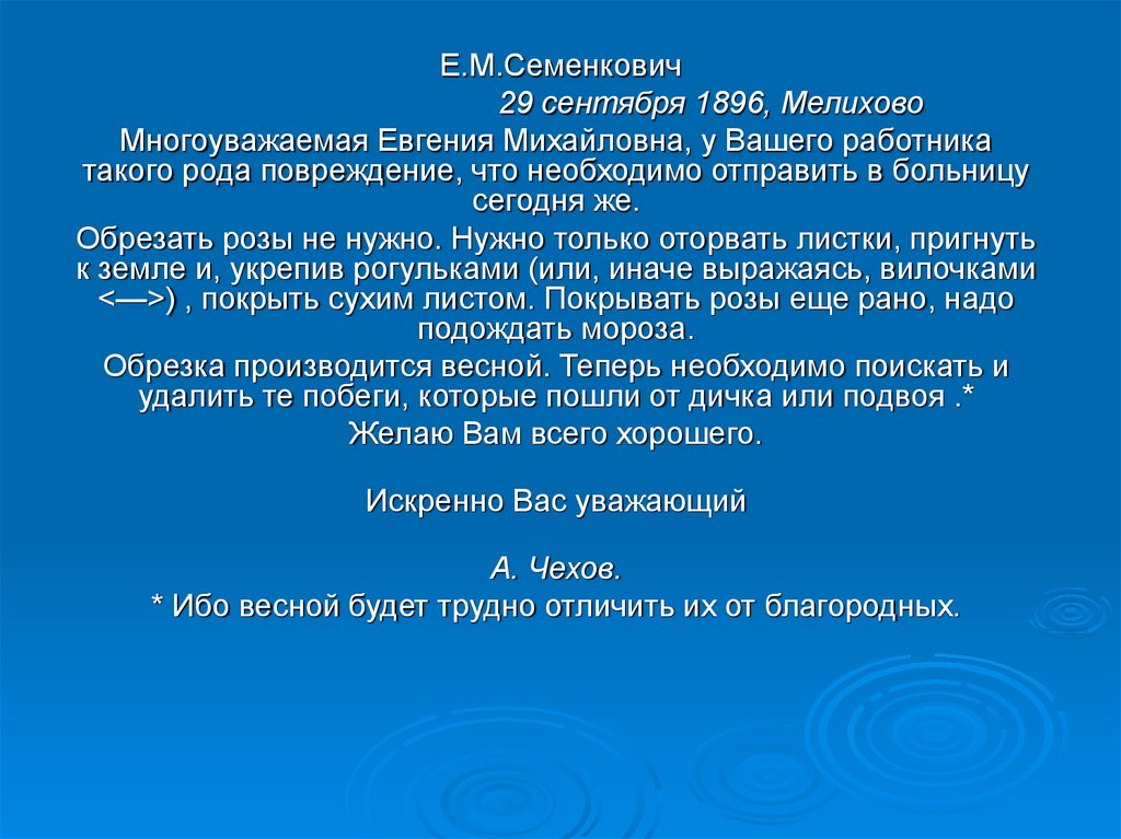 Е.М.Семенкович29 сентября 1896, Мелихово