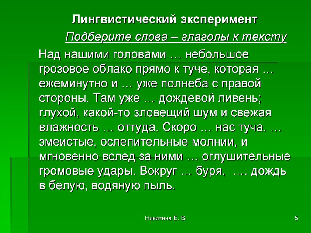 Лингвистический экспериментПодберите слова – глаголы к тексту