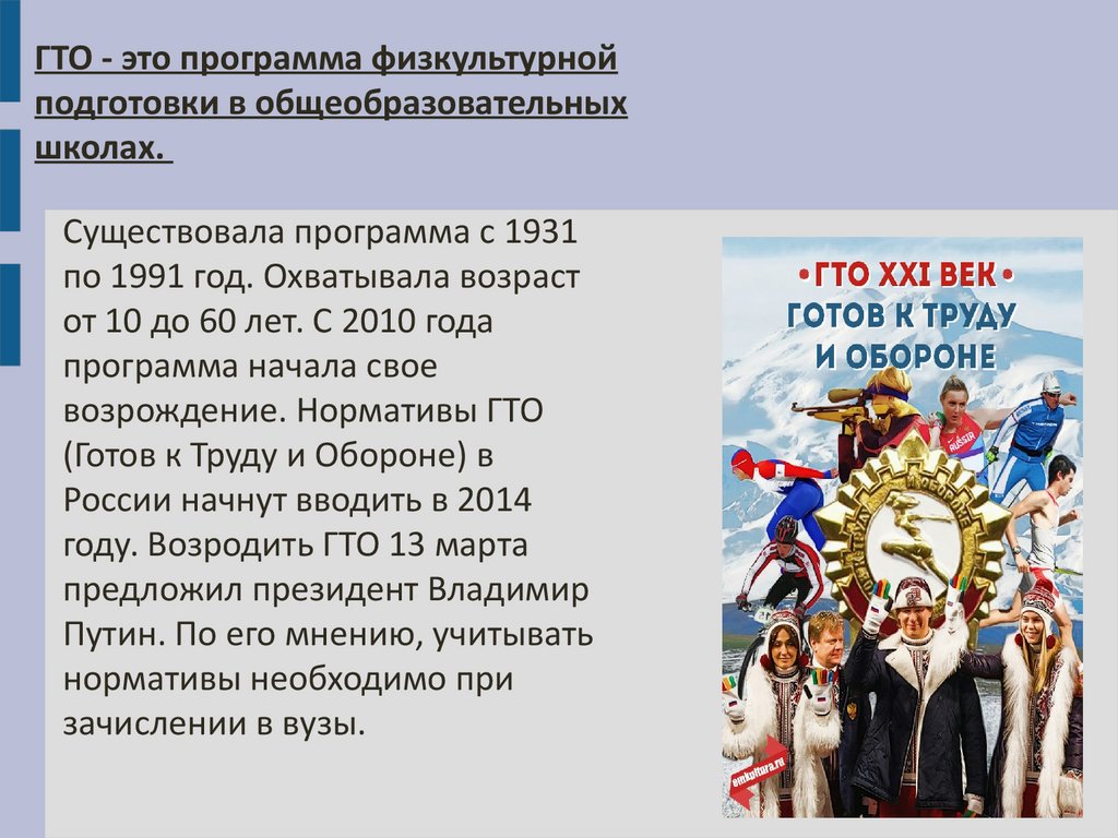 ГТО - это программа физкультурнойподготовки в общеобразовательных