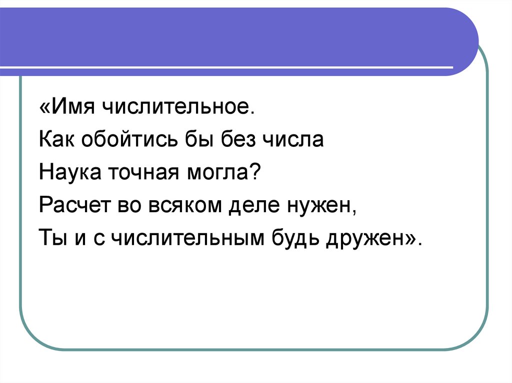 «Имя числительное.Как обойтись бы без числа