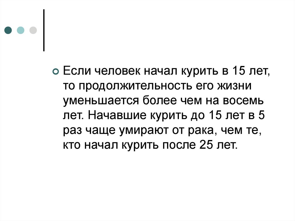 Если человек начал курить в 15 лет,то продолжительность его жизни