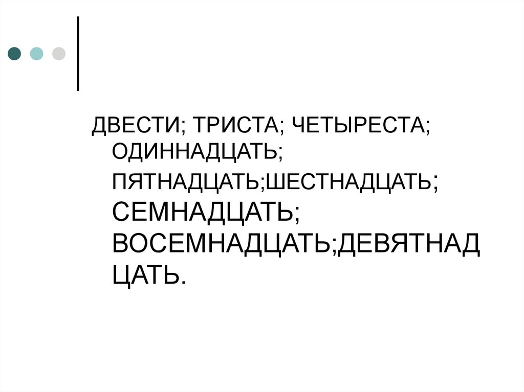 ДВЕСТИ; ТРИСТА; ЧЕТЫРЕСТА;ОДИННАДЦАТЬ;