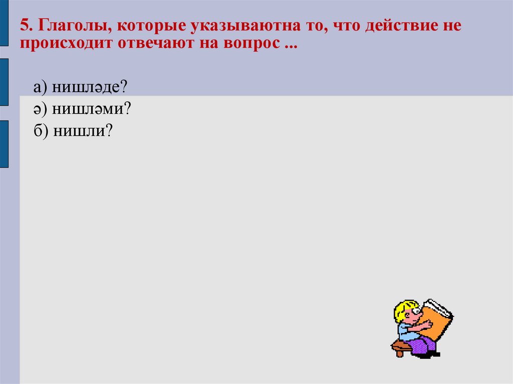 5. Глаголы, которые указываютна то, что действие непроисходит отвечают на вопрос ...