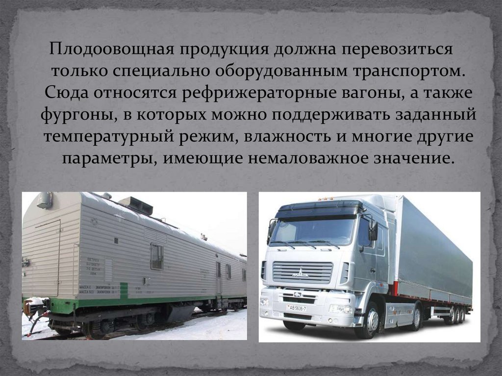 Плодоовощная продукция должна перевозитьсятолько специально оборудованным транспортом.