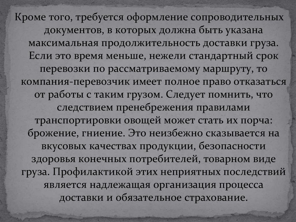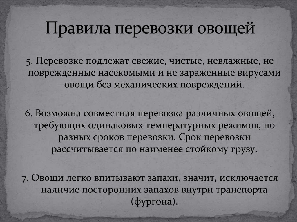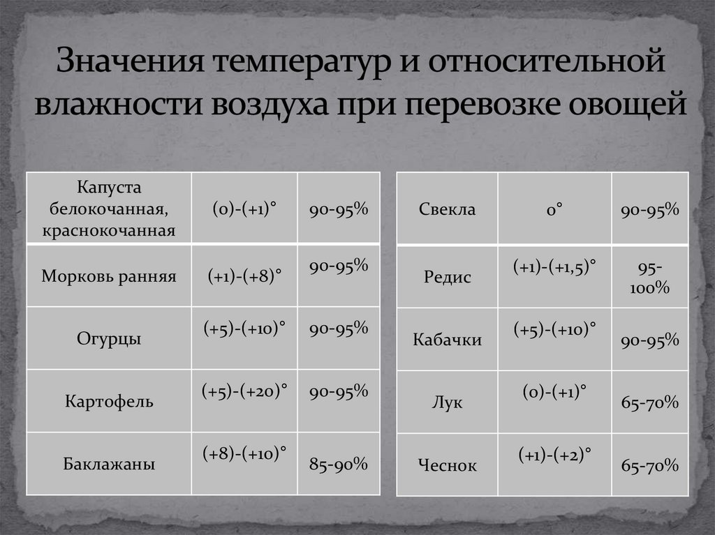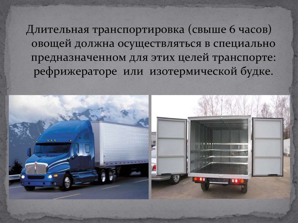 Длительная транспортировка (свыше 6 часов)овощей должна осуществляться в специально