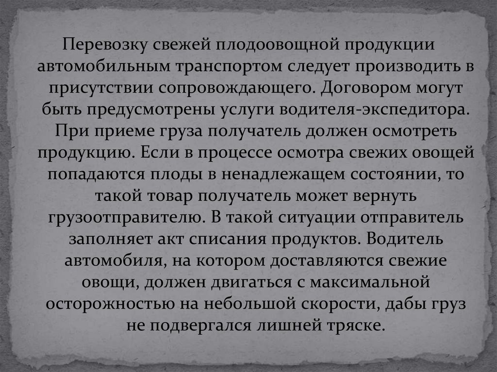 Перевозку свежей плодоовощной продукцииавтомобильным транспортом следует производить в
