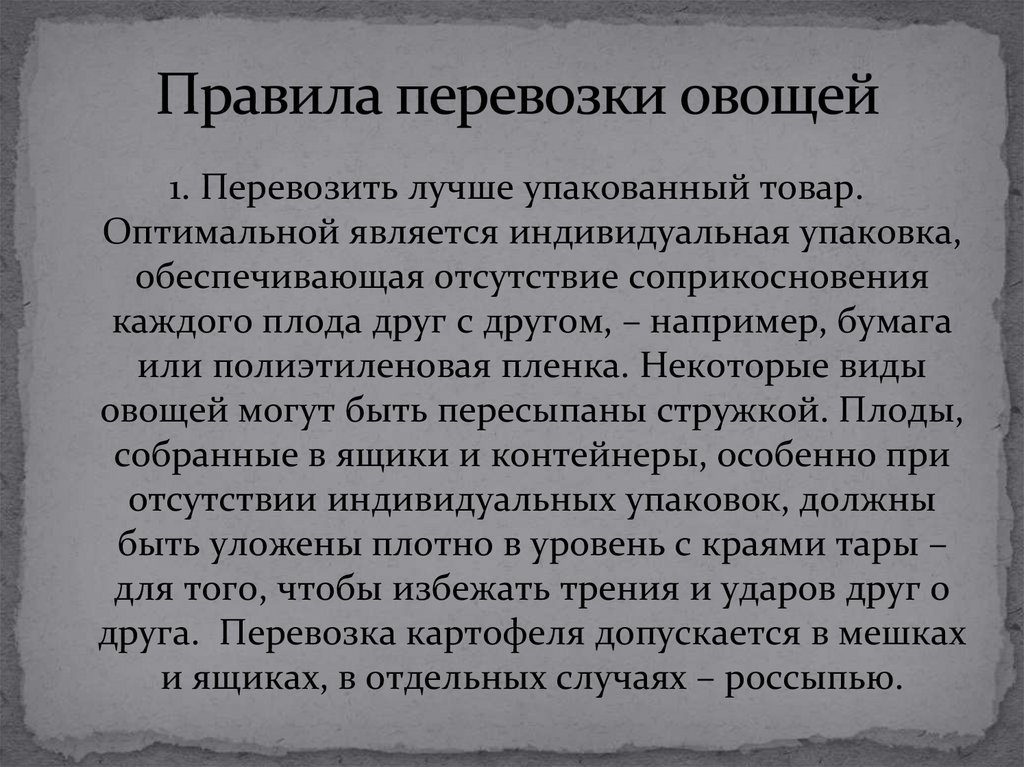 организована перевозка овощей, зависит от их
