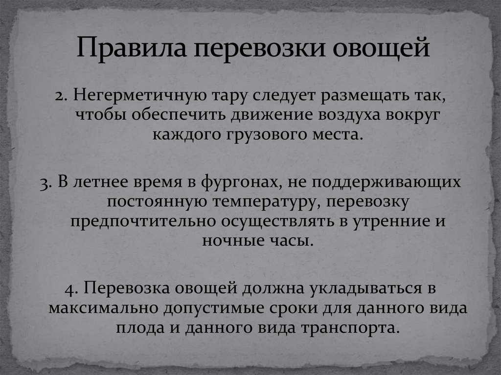 4. Перевозка овощей должна укладываться в