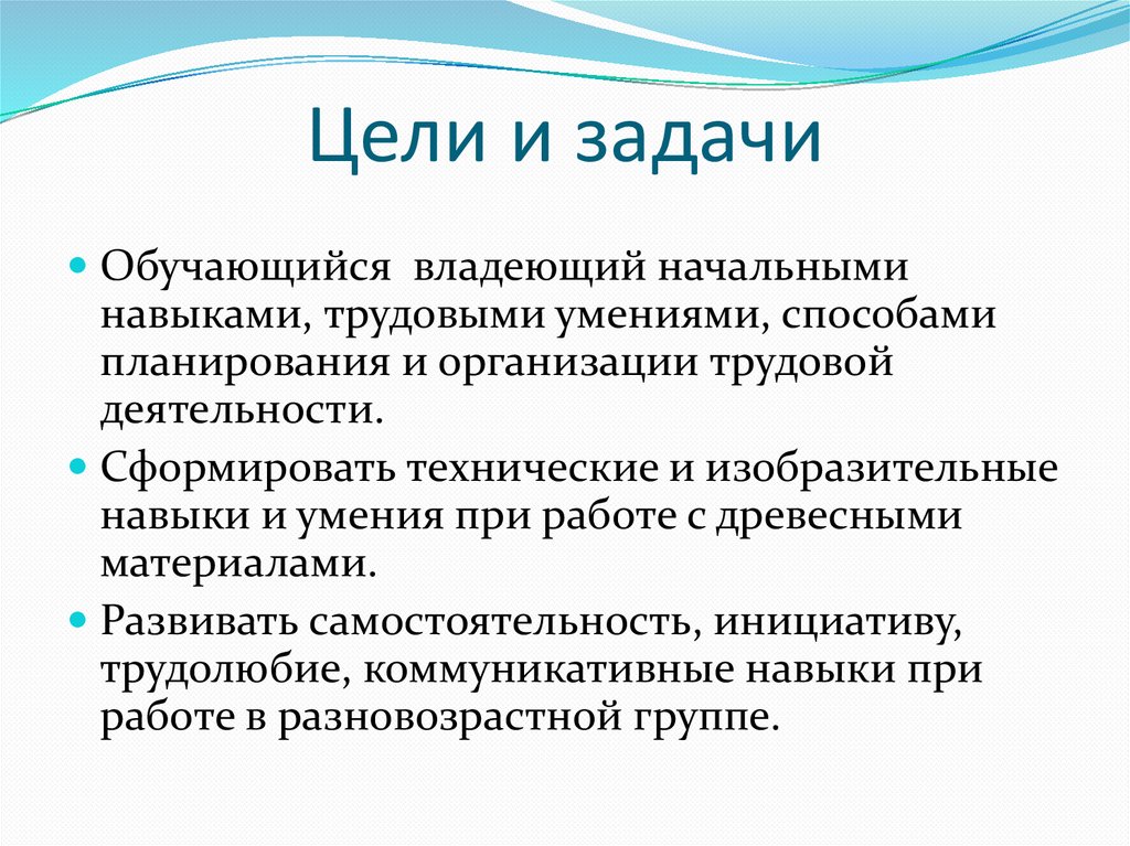 Цели и задачиОбучающийся владеющий начальными
