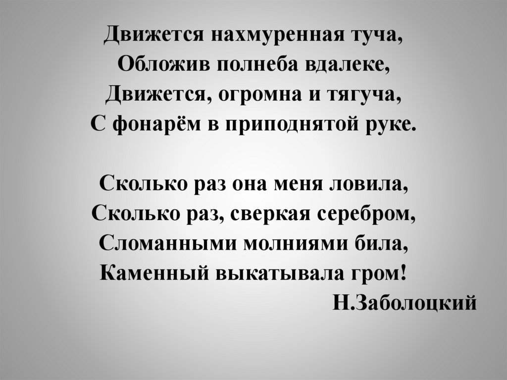 Движется нахмуренная туча,Обложив полнеба вдалеке,