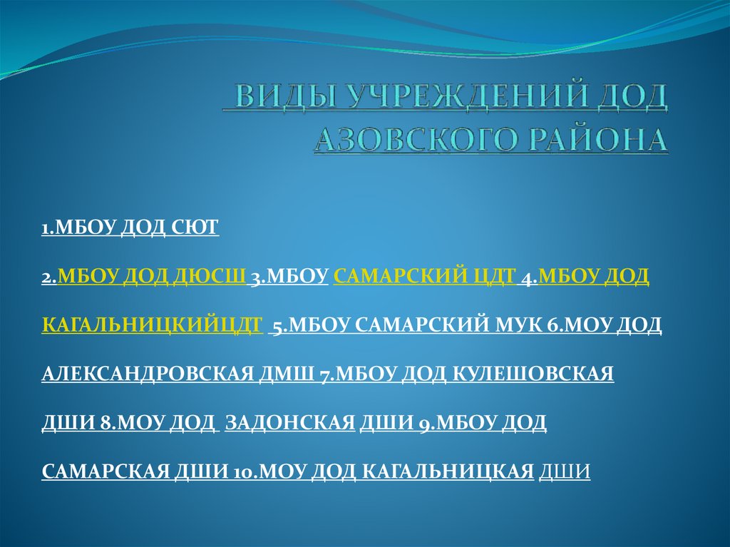 1.МБОУ ДОД СЮТ2.МБОУ ДОД ДЮСШ 3.МБОУ САМАРСКИЙ ЦДТ 4.МБОУ ДОД