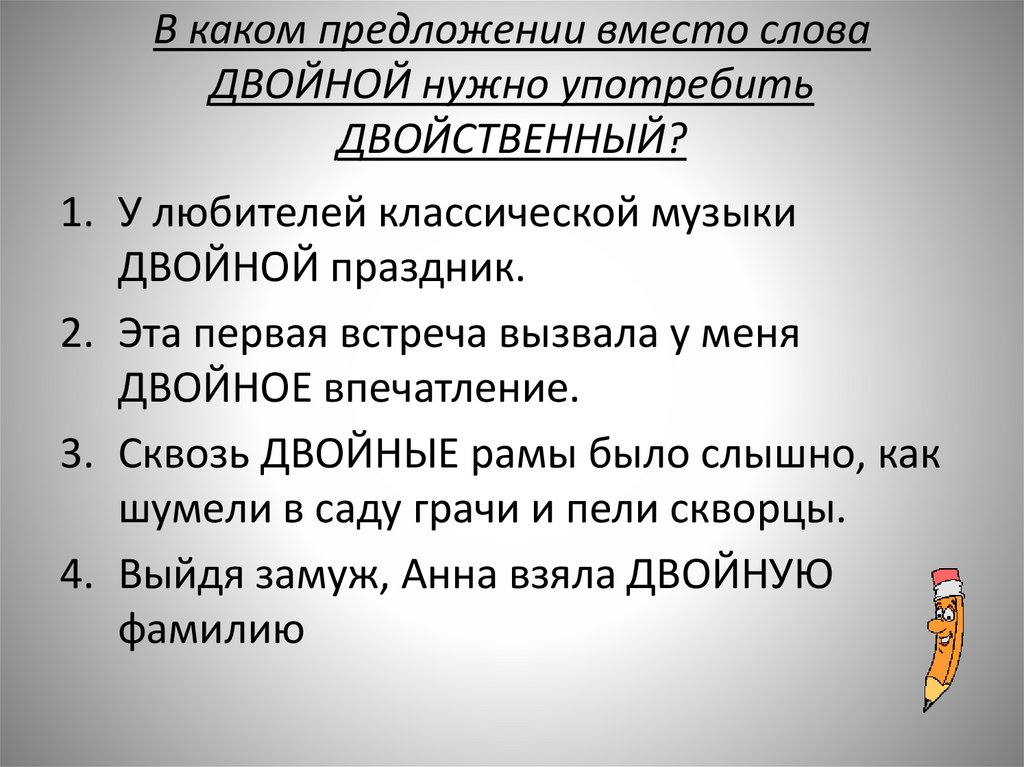 В каком предложении вместо словаДВОЙНОЙ нужно употребить
