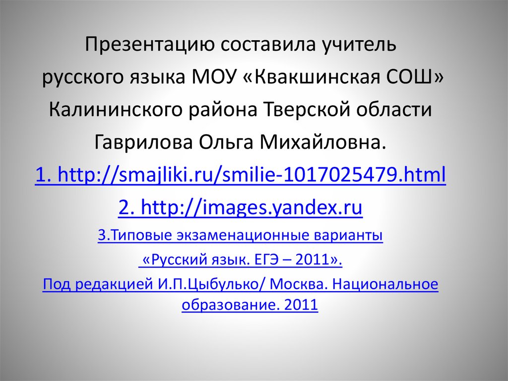 Презентацию составила учительрусского языка МОУ «Квакшинская СОШ»