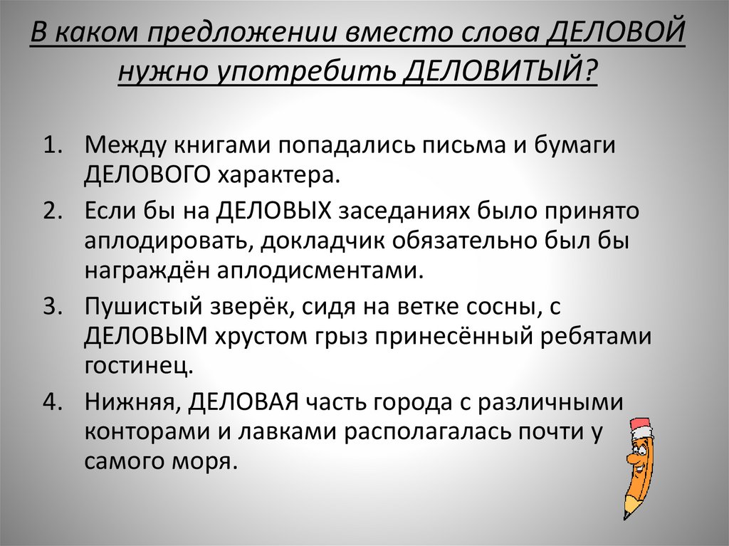 В каком предложении вместо словаДЕЛОВИТЫЙ нужно употребить
