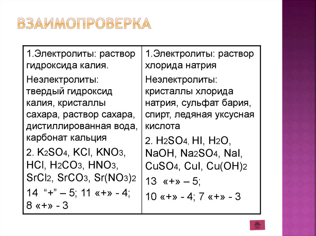1.Электролиты: растворгидроксида калия.
