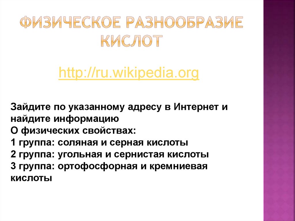 кислоту используя различные виды