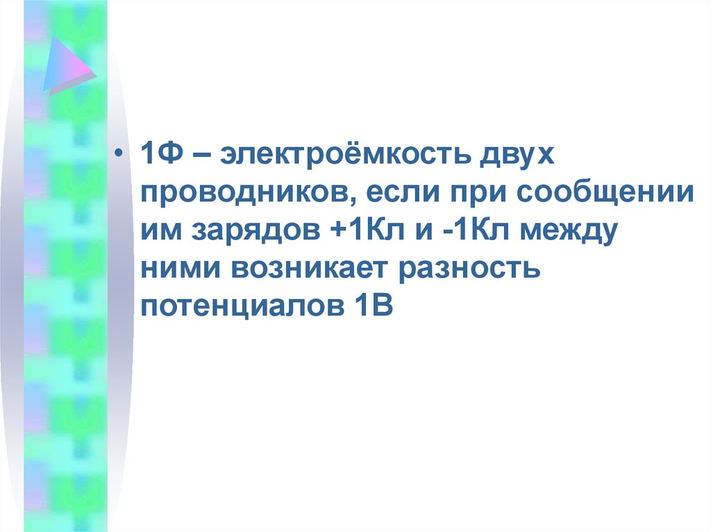 • 1Ф – электроёмкость двухпроводников, если при сообщении