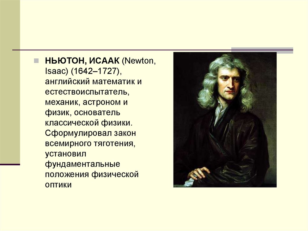 НЬЮТОН, ИСААК (Newton,Isaac) (1642–1727),