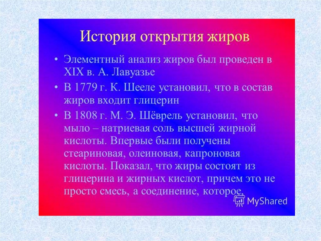 Жиры. История открытия жиров