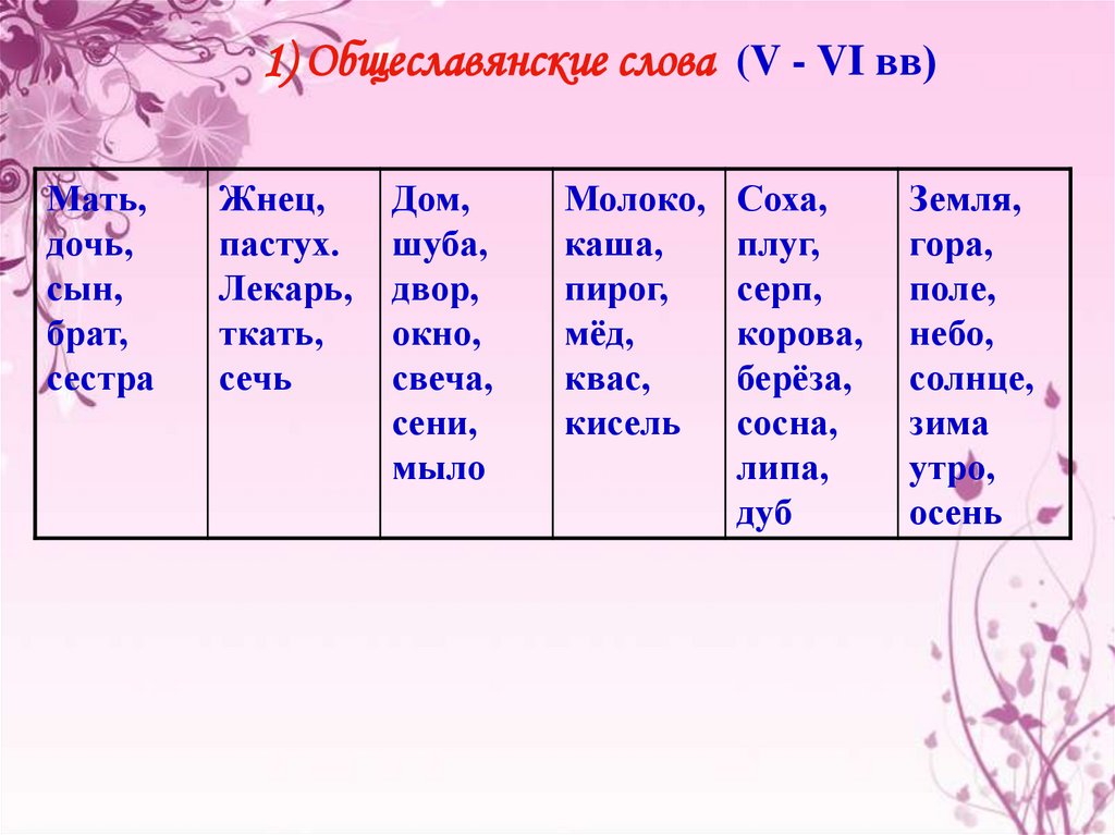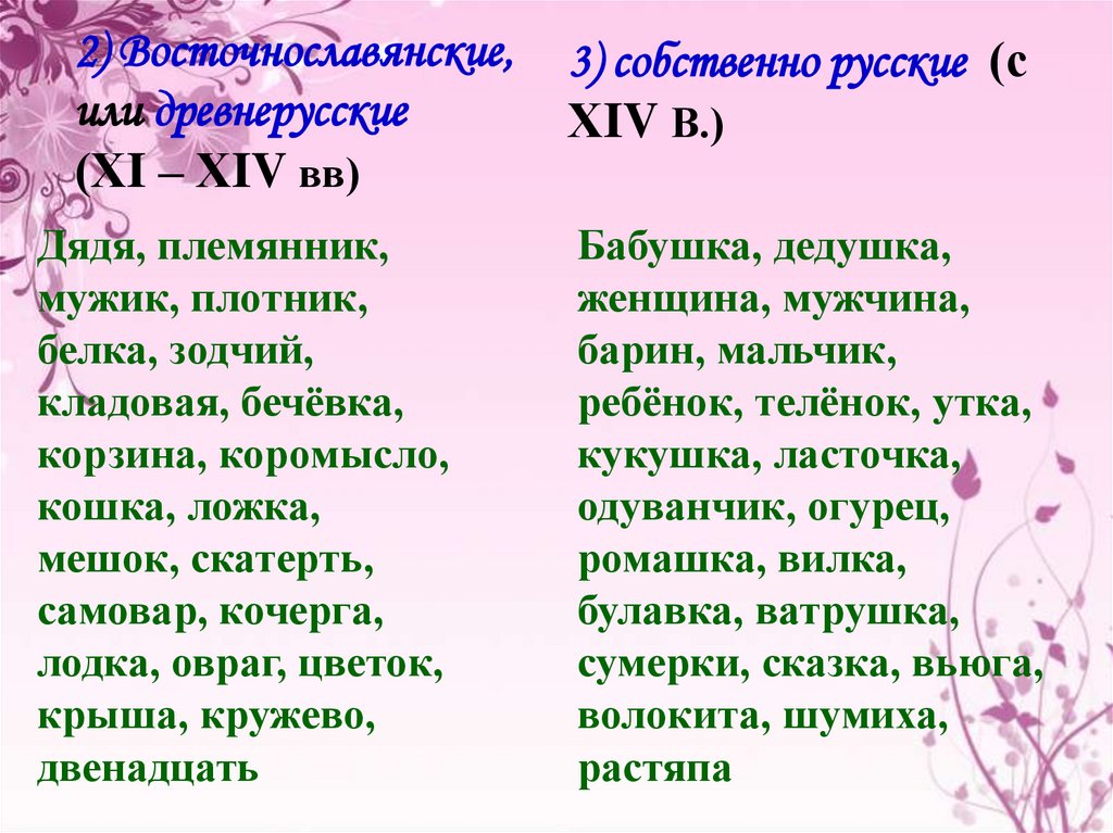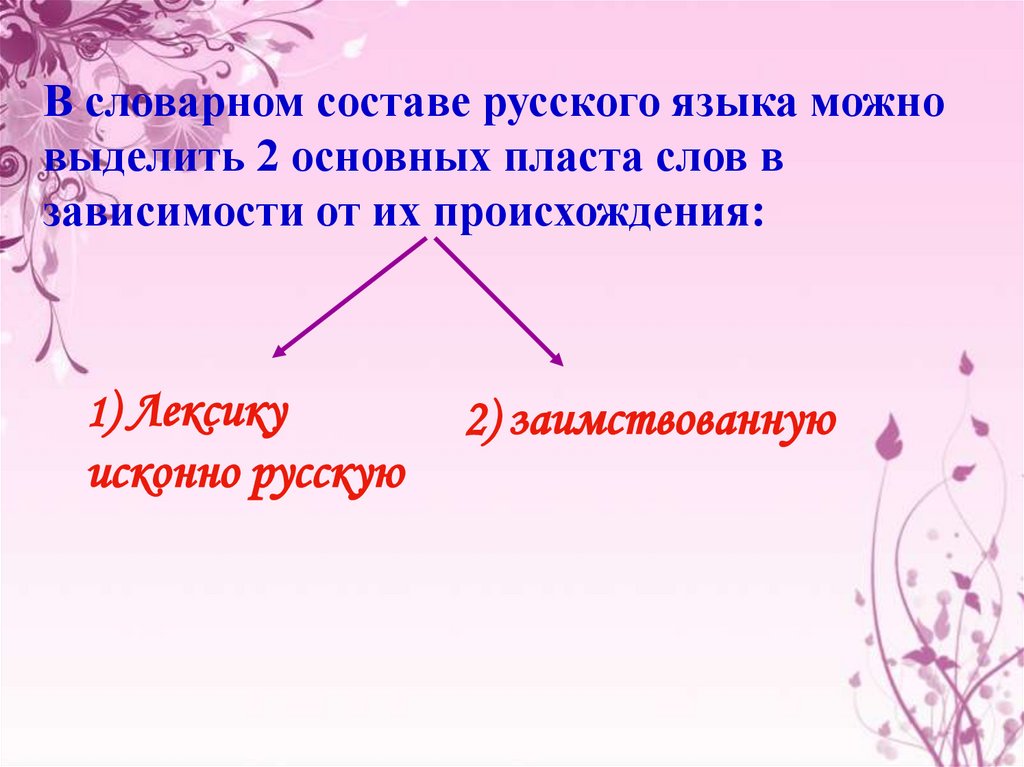 В словарном составе русского языка можновыделить 2 основных пласта слов в