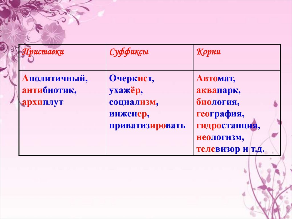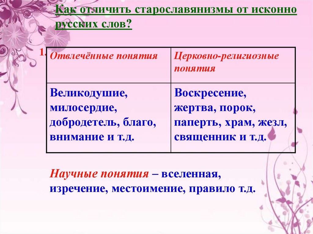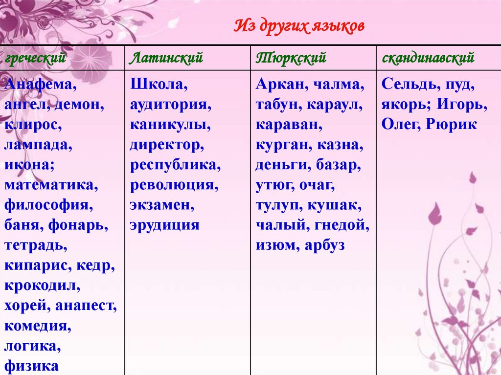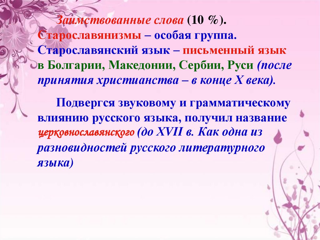 Заимствованные слова (10 %).Старославянизмы – особая группа.