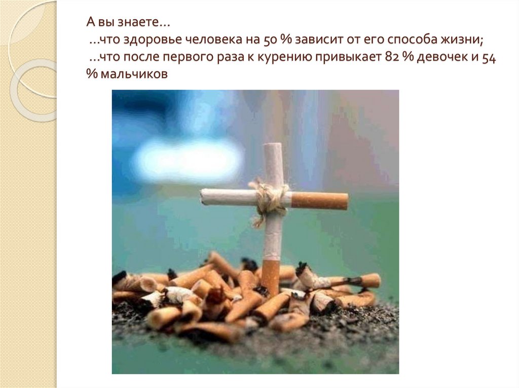 А вы знаете……что здоровье человека на 50 % зависит от его способа жизни;