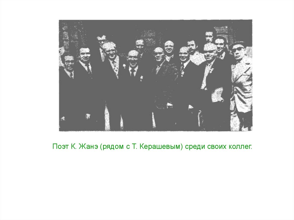 Поэт К. Жанэ (рядом с Т. Керашевым) среди своих коллег.16.