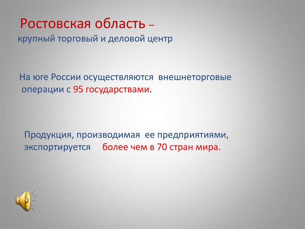 Ростовская область –крупный торговый и деловой центр