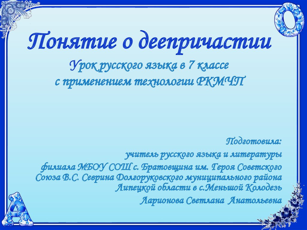 1. Понятие о деепричастии Урок русского языка в 7 классе с применением технологии РКМЧП