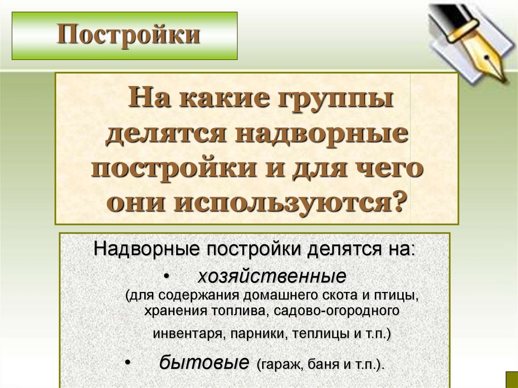 Надворные постройки делятся на: