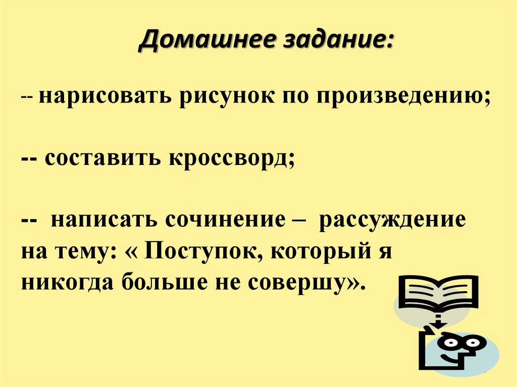 Домашнее задание:-- нарисовать рисунок по произведению;
