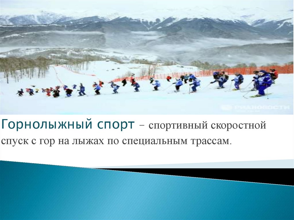 Горнолыжный спорт - спортивный скоростнойспуск с гор на лыжах по специальным трассам.