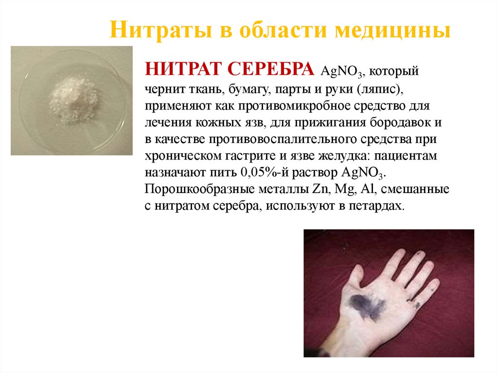 Нитраты в области медициныНИТРАТ СЕРЕБРА AgNO3, который