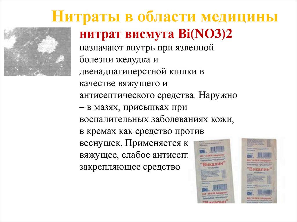 Нитраты в области медицинынитрат висмута Вi(NO3)2