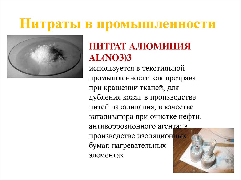 Нитраты в промышленностиНИТРАТ АЛЮМИНИЯ