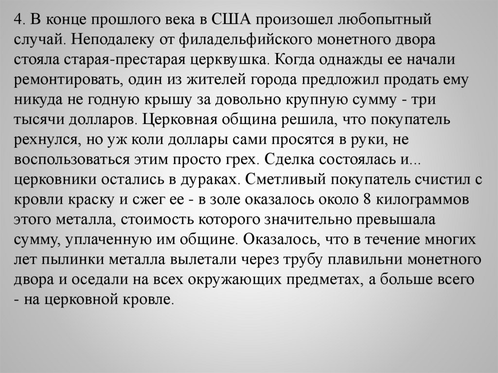 4. В конце прошлого века в США произошел любопытныйслучай. Неподалеку от филадельфийского монетного двора