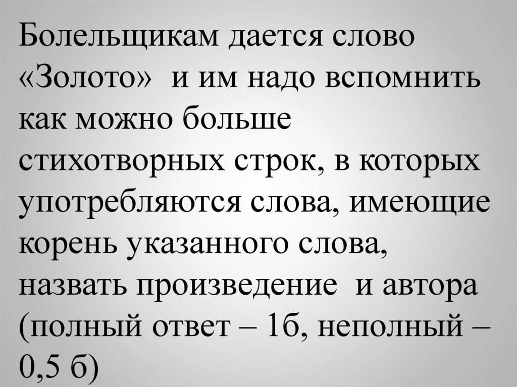 Болельщикам дается слово«Золото» и им надо вспомнить