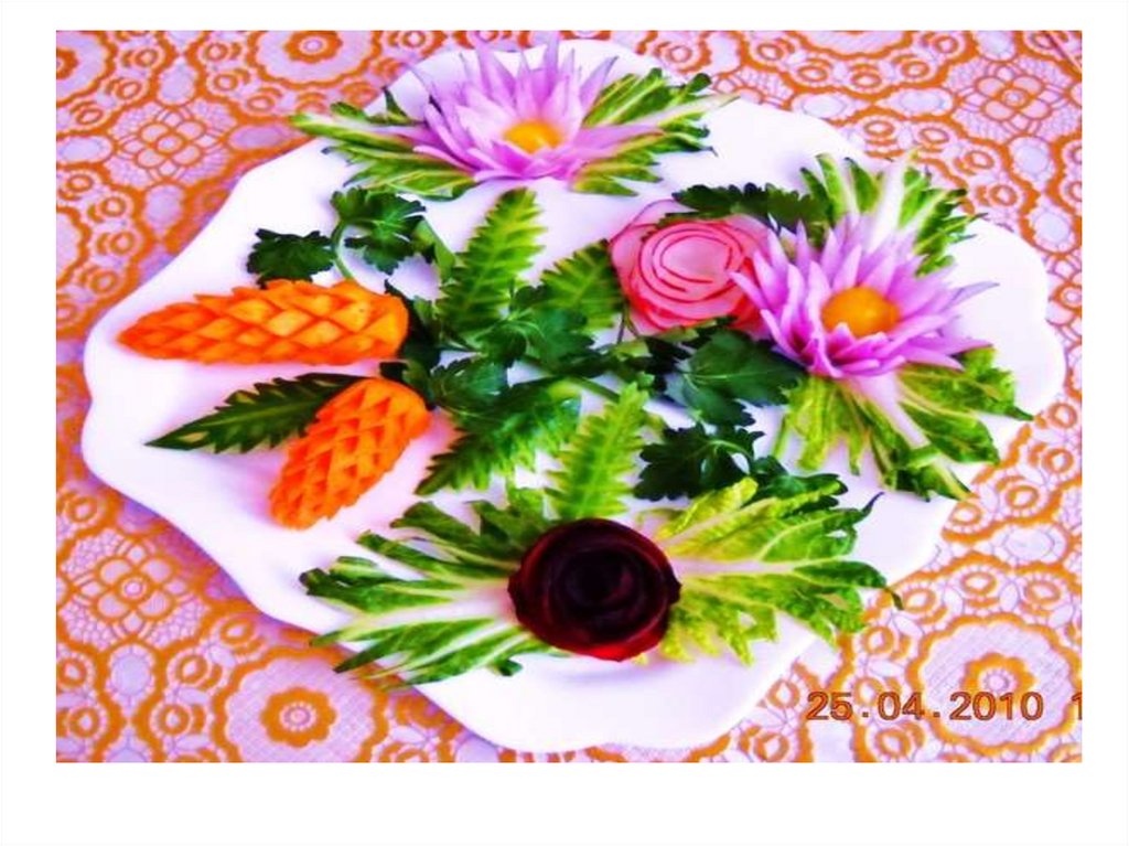 Фигурная нарезка фруктов и овощей. Украшение блюд