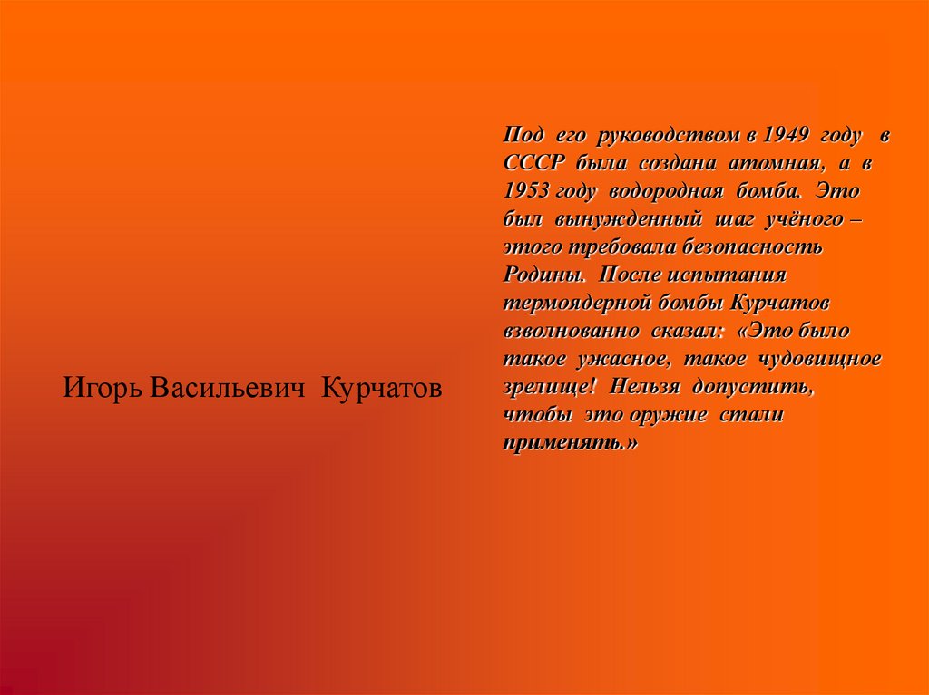 Игорь Васильевич КурчатовПод его руководством в 1949 году в