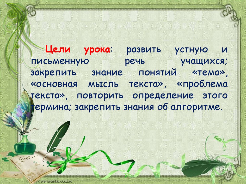 Цели урока: развить устную иписьменную