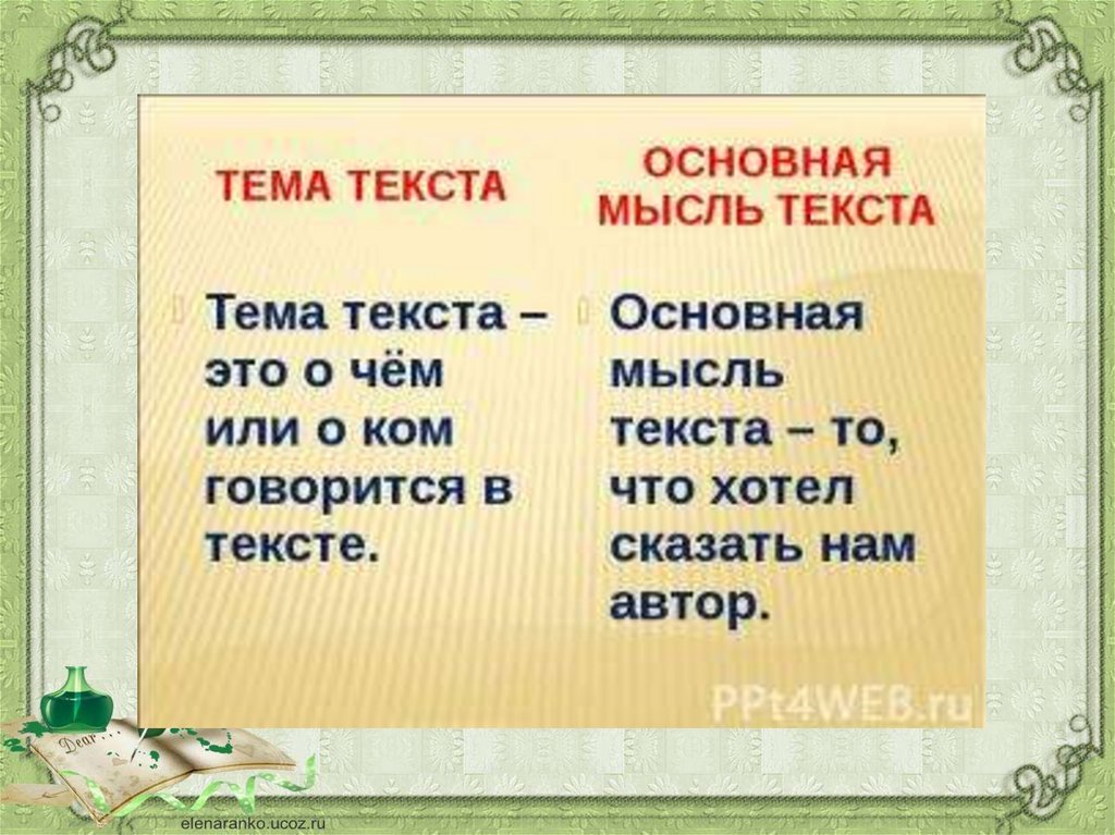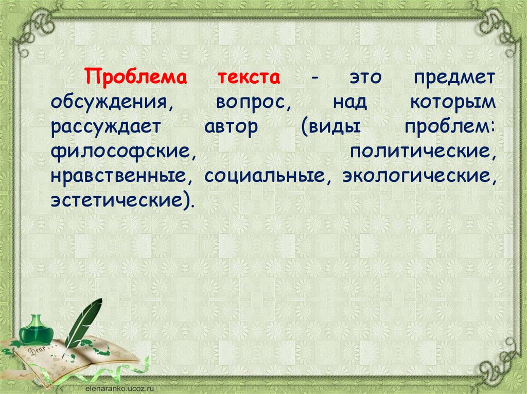 «основная мысль текста», «проблема