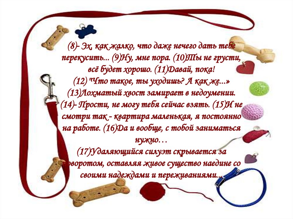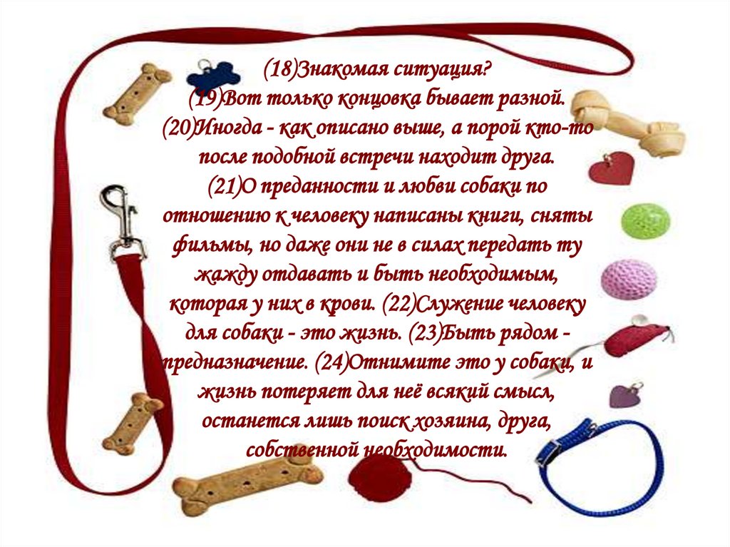 для собаки - это жизнь. (23)Быть рядом предназначение. (24)Отнимите это у собаки, и
