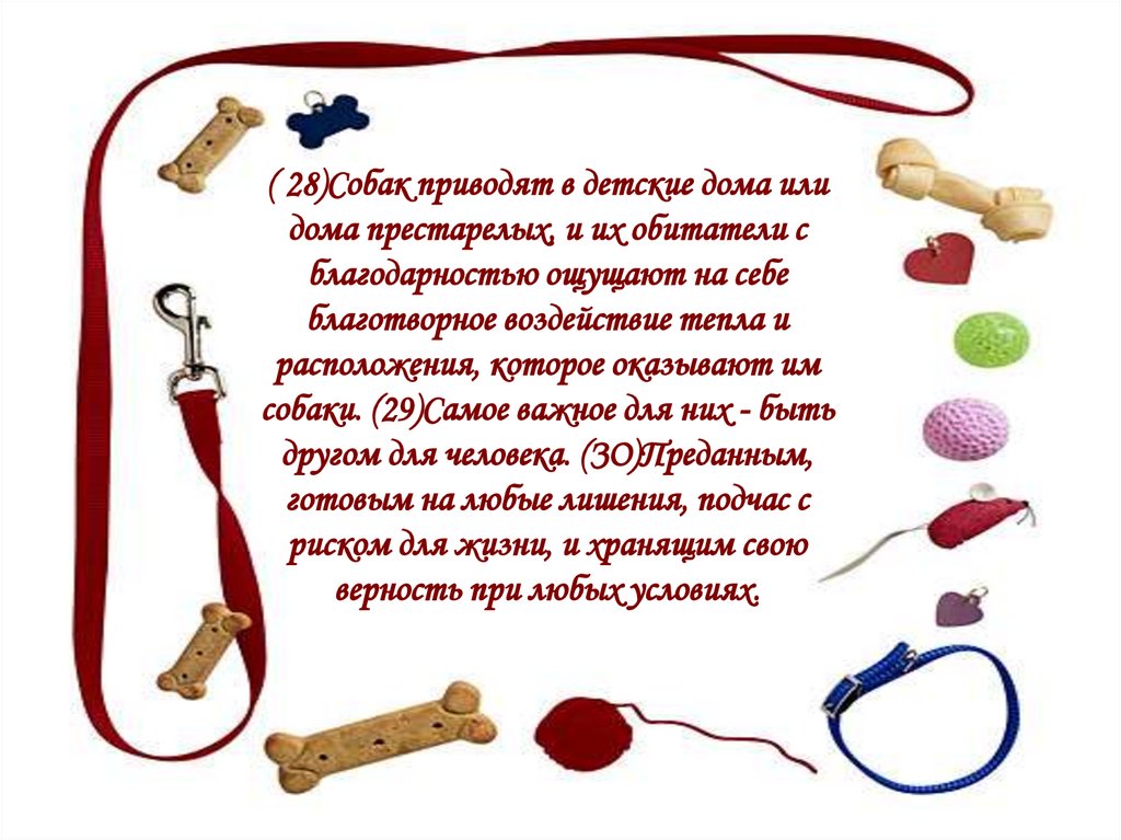 ( 28)Собак приводят в детские дома илидома престарелых, и их обитатели с