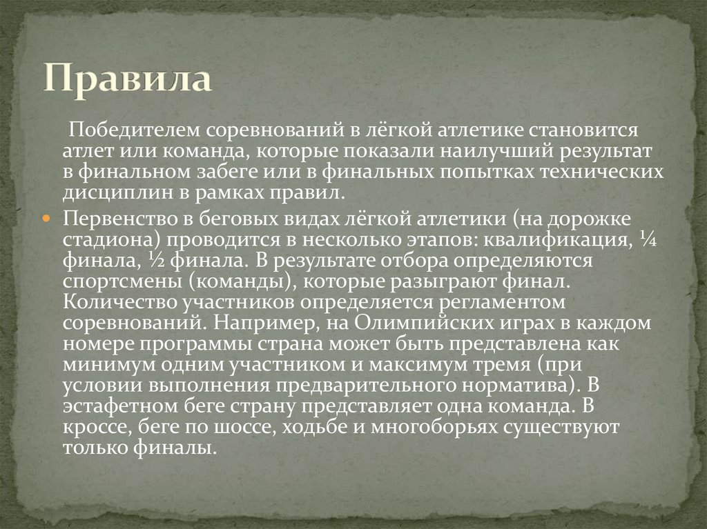 Победителем соревнований в лёгкой атлетике становитсяатлет или команда, которые показали наилучший результат
