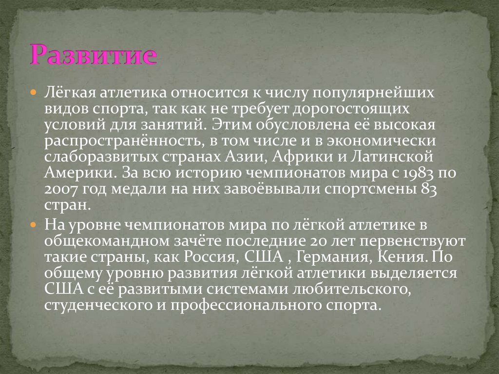 Лёгкая атлетика относится к числу популярнейшихвидов спорта, так как не требует дорогостоящих